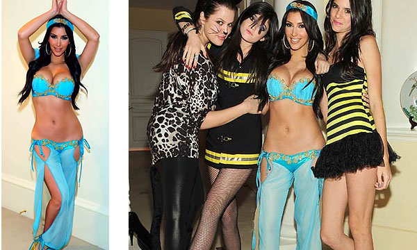 Kim Kardashian se ganó el título de la más sensual de Halloween. La estrella mostró sus impresionantes curvas con un disfraz de Jazmín, la novia de Aladino, con un escote para el infarto.